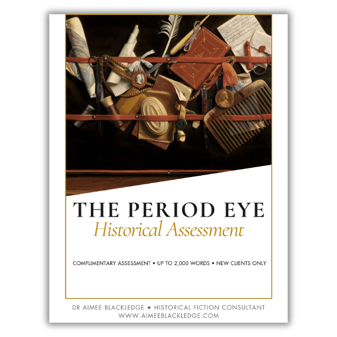 The Period Eye is a complimentary historical assessment I occasionally offer to writers who are considering working with me. Submit a scene, a chapter opening, or any passage from your manuscript of up to 2,000 words and choose one of four categories for me to assess. I'll return a thorough written audit in the same format I use for paid clients.